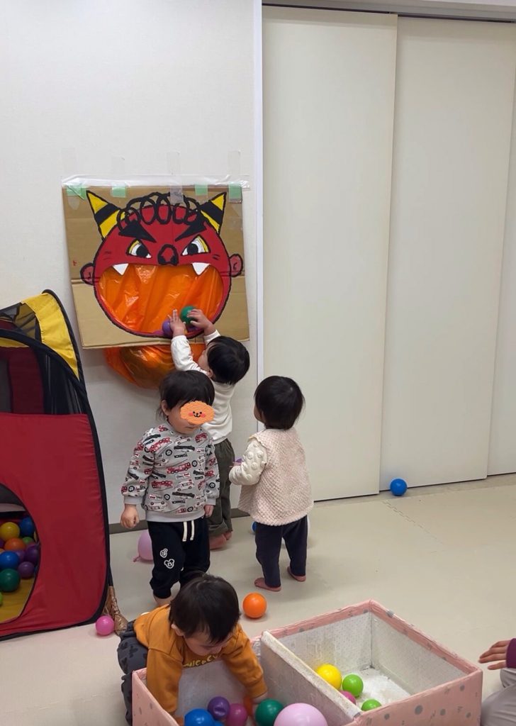 園の子どもたちはあそびや絵本などで鬼に親しみ、節分の日を迎えました。